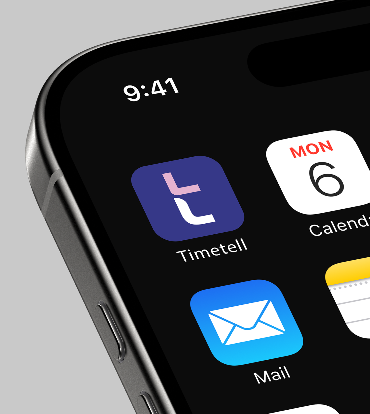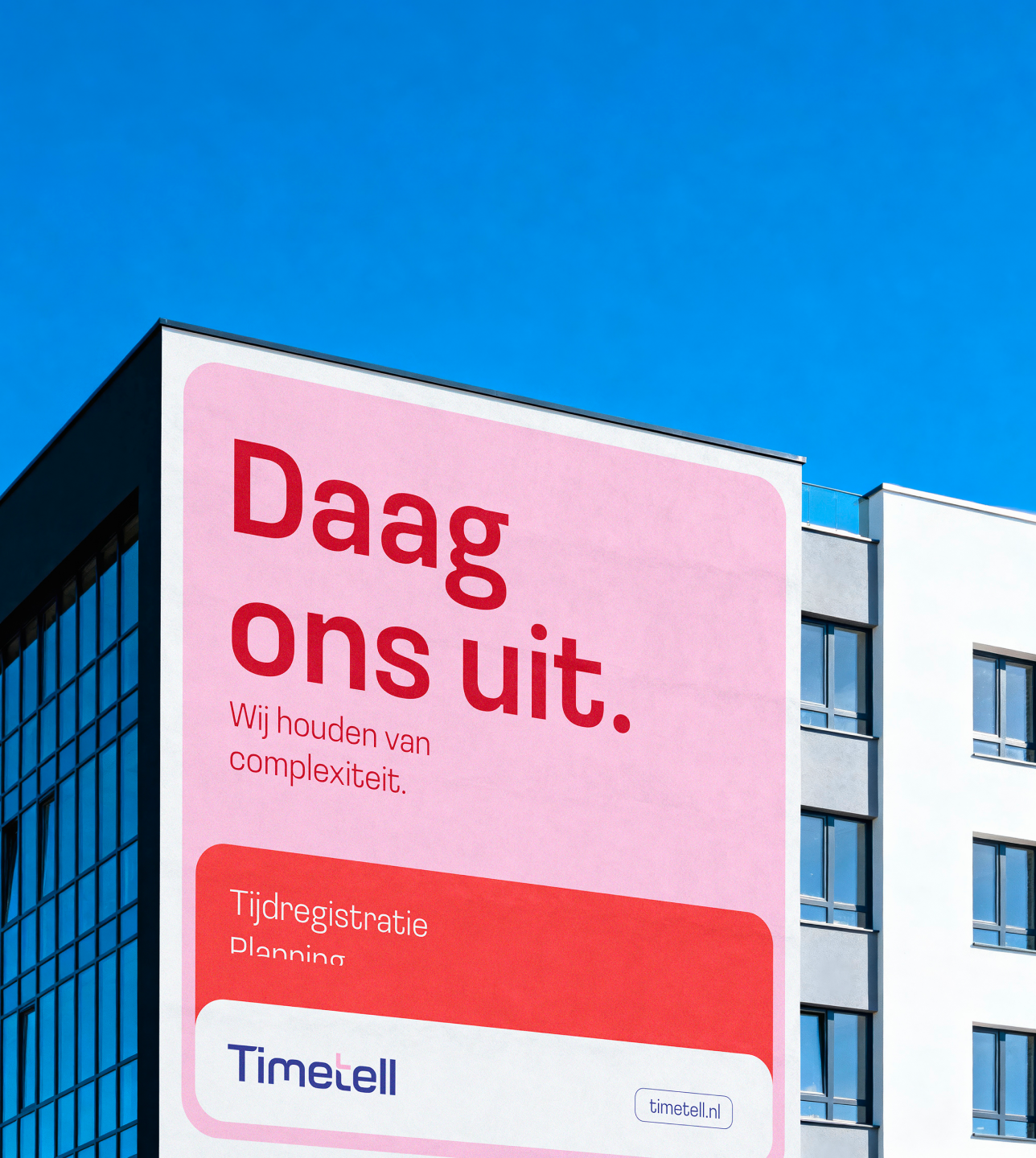 De visuele stijl is opgebouwd rondom één krachtige gedachte: overzicht in tijd en processen. De afgeronde vlakken vormen een herkenbaar stijlelement en verwijzen naar de wereld van Timetell: tijdbalken, planningen en gekoppelde blokken werk. Door vormen te schakelen en te nesten, met een consistente afrondingsratio, ontstaat een systeem en stijl dat altijd samenhang houdt. Het brengt rust, ritme en herkenbaarheid.